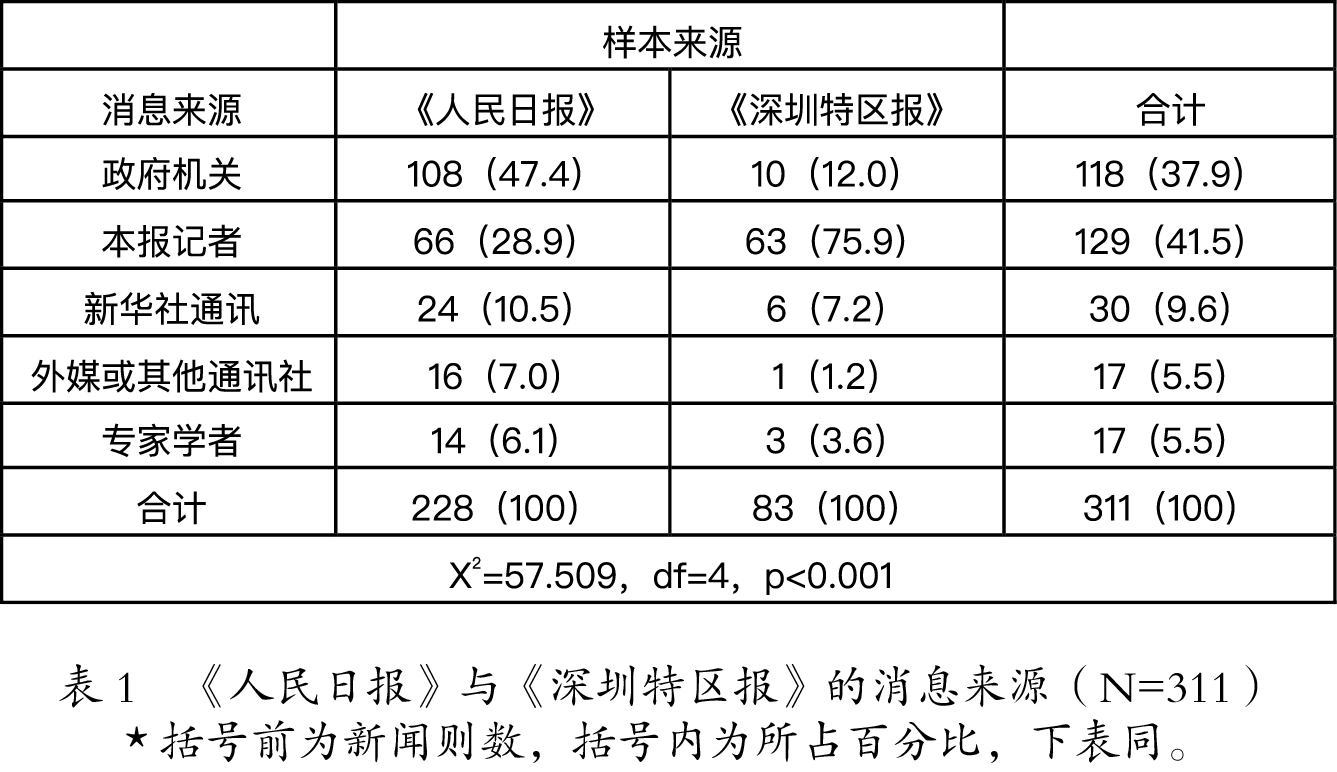 样本的获得方式为:以“改革开放40周年”作为关键词,利用在线数据库“《人民日报》图文数据全文检索系统”及深圳特区报电子版网页先后对文章的标题和正文进行检索,在符合“改革开放40周年”和“排除无关报道及文章”的两个条件下对研究样本进行筛选,最终得到311篇报道,其中《人民日报》样本数228篇,《深圳特区报》样本数83篇。本文以“篇”作为内容分析的单位,凡是报道的新闻内容主题与改革开放40周年相关,并且有消息来源提供的,均纳入分析样本。